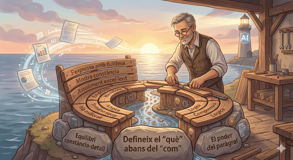 Escriure informes no ha de ser un tràmit buit. El secret per passar d’una llista de frases fetes a una avaluació professional i humana resideix en el banc de frases. És el cor del sistema: si el dissenyes bé ara, estalviaràs hores i guanyaràs qualitat després.